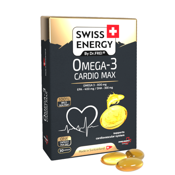 Swiss Energy Omega-3 CARDIO MAX är rikt på EPA och DHA, de mest effektiva omega-3-fettsyrorna för hjärt- och kärlhälsa.